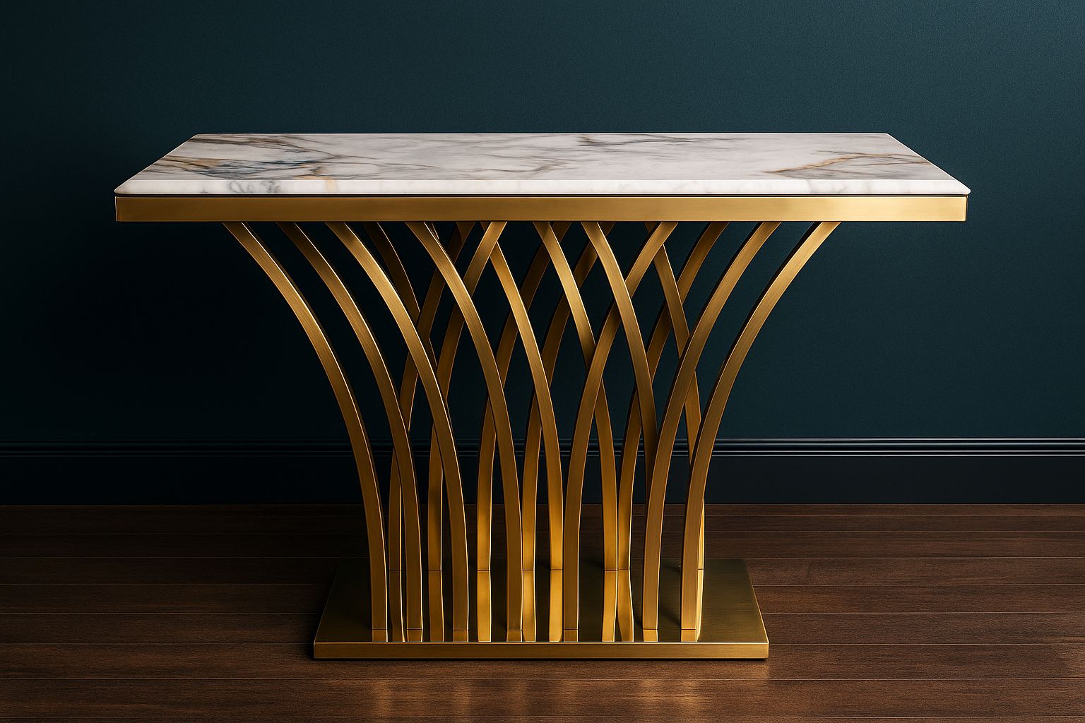 Modern Luxury Gold Console Table with Marble Top | Elegant Entryway Accent