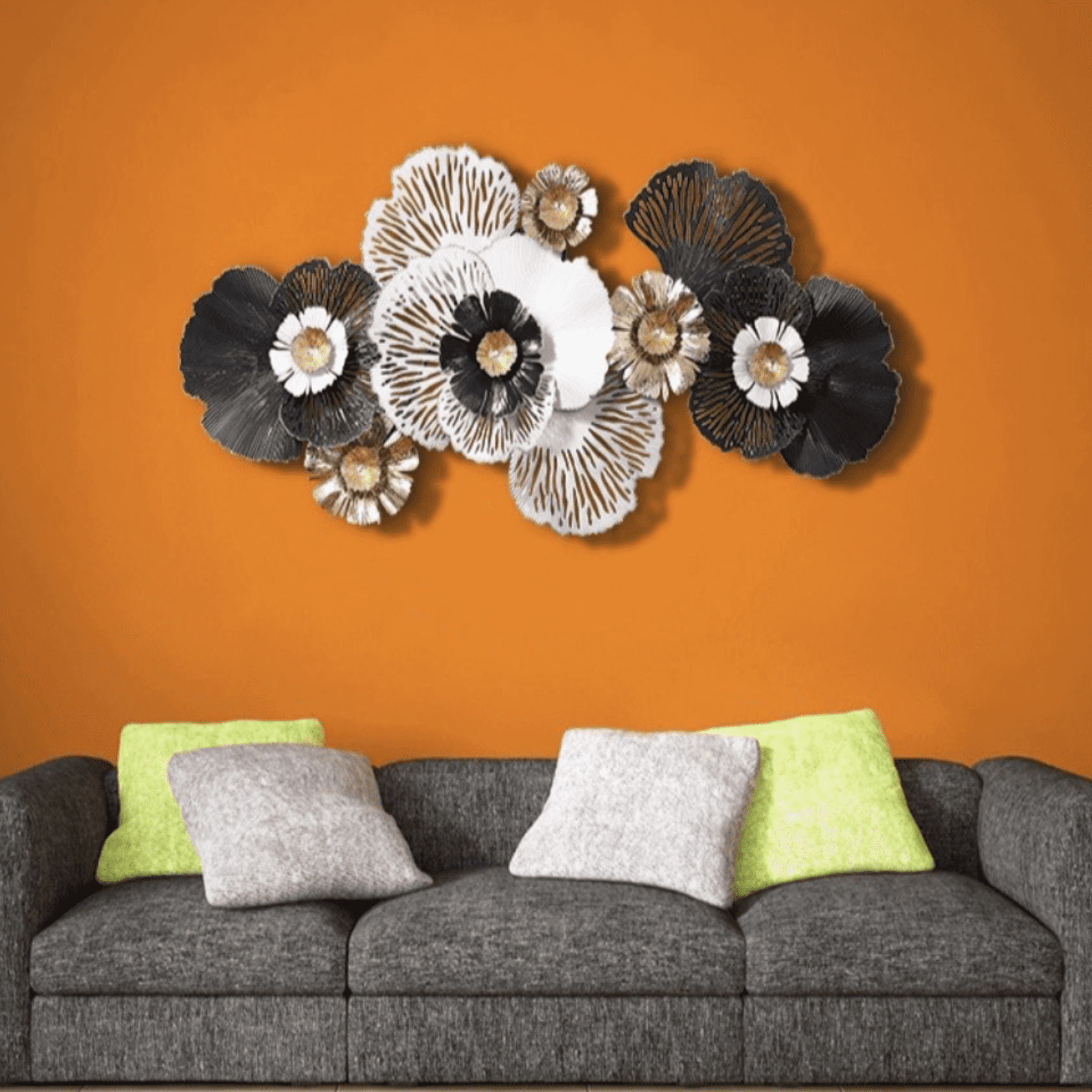 Wall Décor Metal of Flowers off-White, Black, Golden Metal LARGE